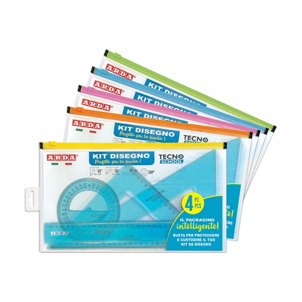 Arda Set disegno in busta con zip della linea Tecnoschool disponibile in 5 colori.