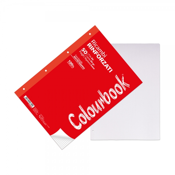 Colourbook Confezione da 50 fogli di ricambio rinforzati a quadretti 4 mm per le scuole elementari, medie e superiori.