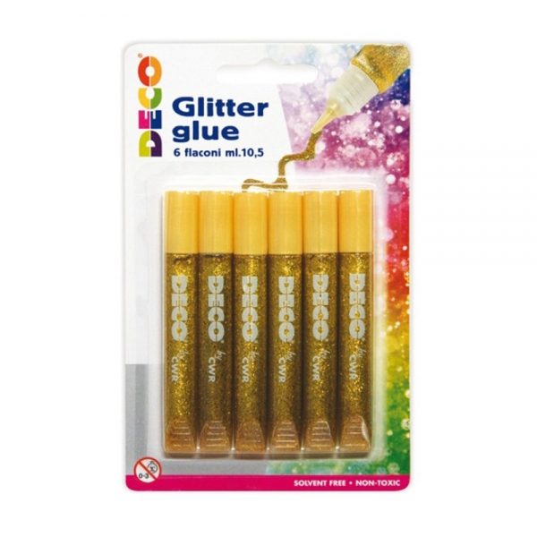 CWR Deco Confezione da 6 colle oro arricchite con glitter in flaconi da 10 ml.