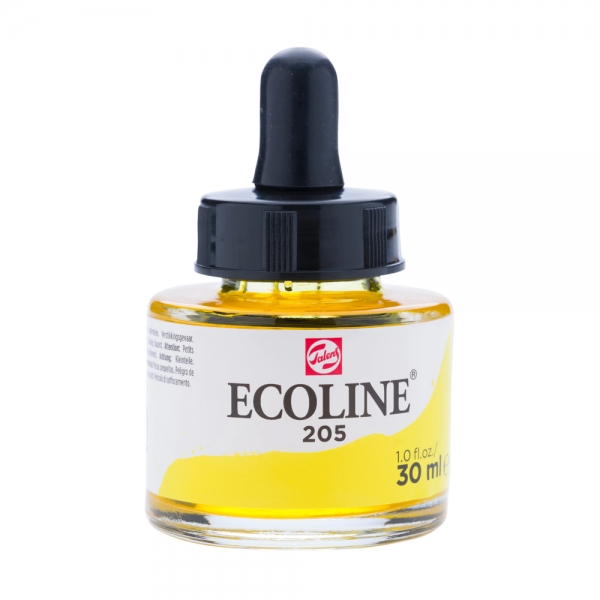 Ecoline Acquerello liquido in flacone da 30 ml nel colore giallo limone 205.