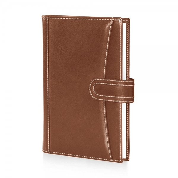 InTempo Agenda giornaliera Business Class nel formato 17x24 cm in pelle di vitello tamponata di colore marrone.