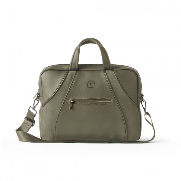 InTempo Slim Velvet two-handle bag in olive green .