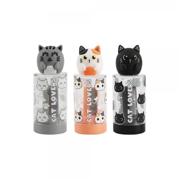 iTotal temperamatite a un foro con serbatoio con design a tema gatto, disponibile in 3 versioni: gatto nero, gatto arancione o gatto grigio.