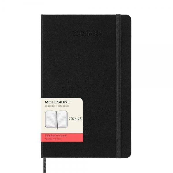 Moleskine Agenda giornaliera 18 mesi da luglio 2025 a dicembre 2026 nel formato large 13x21 cm con copertina rigida in nero.