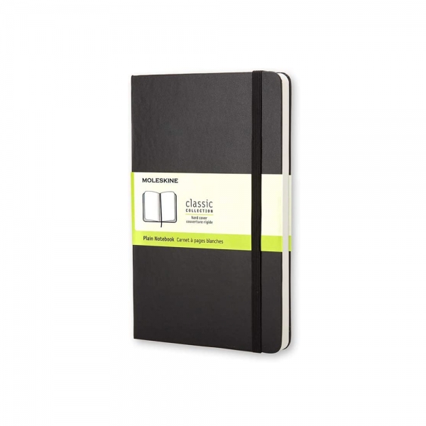 Moleskine Taccuino Classic a pagine bianche nel formato pocket 9x14 cm con copertina rigida in nero.