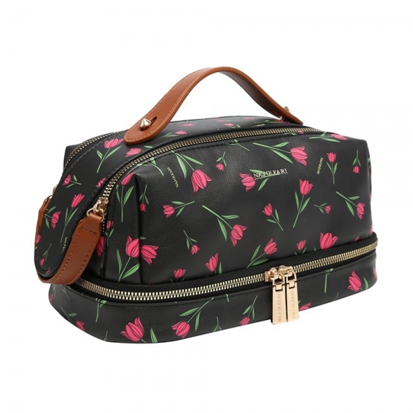 Naj-Oleari Venus Beauty con doppio scompartimento con pattern tulipani nel colore nero.