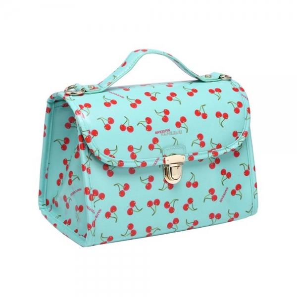 Naj-Oleari Cherry Cestino con pattern ciliegie nel colore azzurro.
