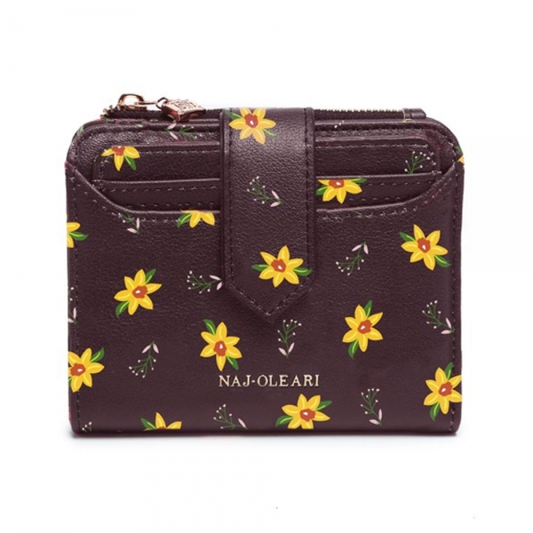 Naj-Oleari Jasmin Portafoglio da donna con pattern gelsomini nel colore bordeaux.
