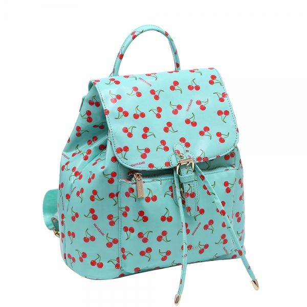 Naj-Oleari Cherry Zaino con pattern ciliegie nel colore azzurro.
