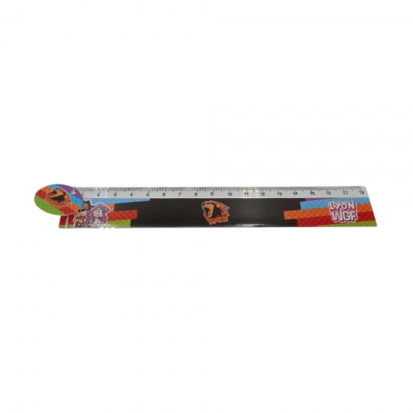 The ruler is made of plastic and has an indelible millimetre mark printed on the top edge.