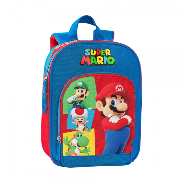 Panini Zaino mini Super Mario rosso e blu per la scuola dell'infanzia.