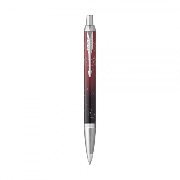 Il corpo è laccato sfumato dal rosso al nero con un motivo tattile inciso arricchito da accattivanti dettagli cromati e dall'iconica clip a freccia di Parker.