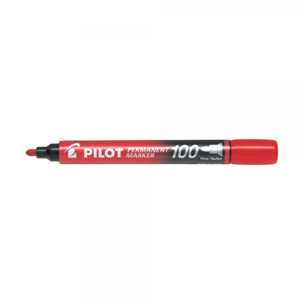 Pilot Pennarello indelebile Permanent Marker 100 con punta tonda di colore rosso.