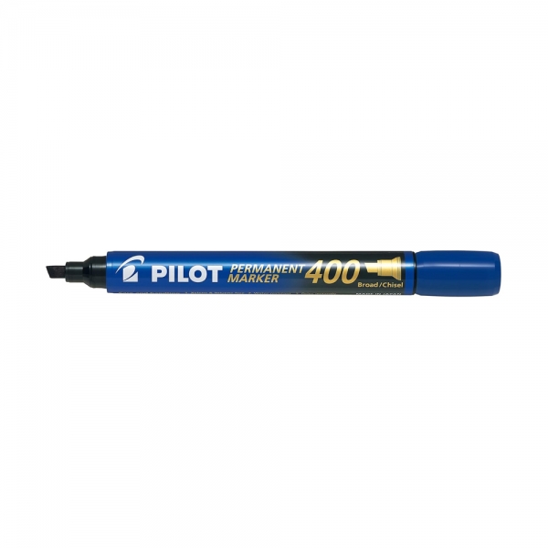 Pilot Permanent Marker 400 with chisel tip in blue .