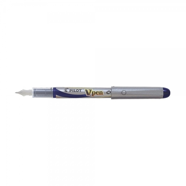 Pilot V Pen Silver Disposable fountain pen with blue liquid ink .