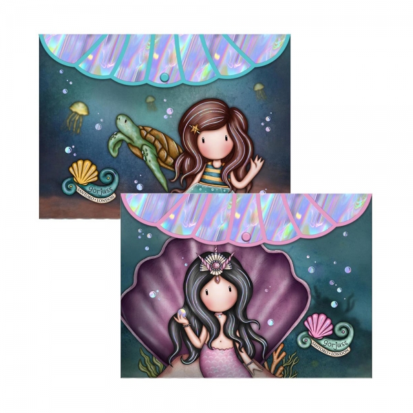 Santoro Gorjuss Set di 2 buste portadocumenti con bottone della collezione Making Waves con le opere Deep Secrets e The World Is Your Oyster.