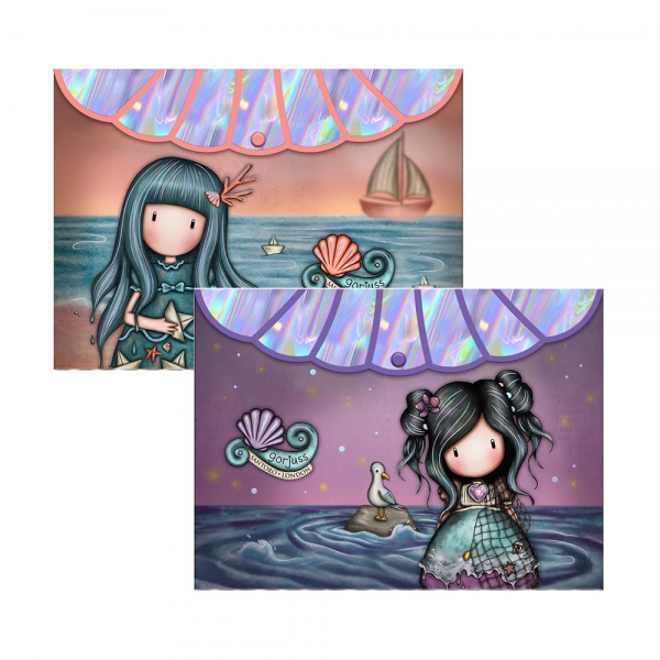 Santoro Gorjuss Set di 2 buste portadocumenti con bottone della collezione Making Waves con le opere Lost At Sea e Washed Ashore.