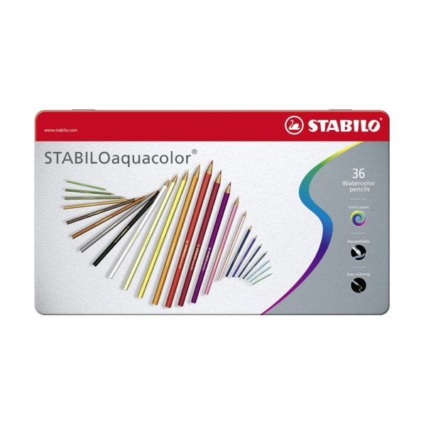 Stabilo Aquacolor Scatola in metallo da 36 matite colorate acquerellabili.