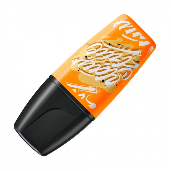 Stabilo Boss Mini Small highlighter in orange with barrel decorated by the artist Snooze One .