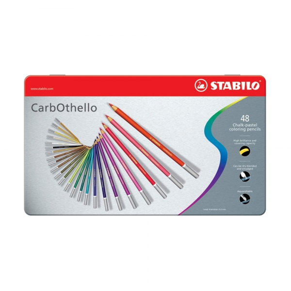 Stabilo Matite carboncino colorate CarbOthello Scatola in metallo con 48 pastelli assortiti. All'interno della scatola è presente anche una gommapane e un temperamatite.