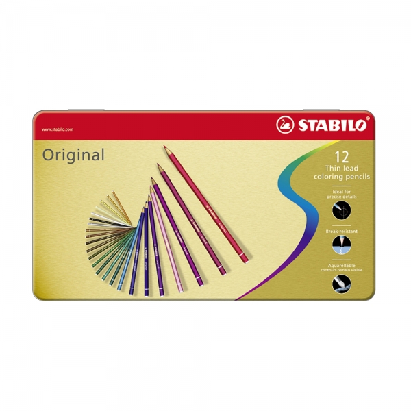Stabilo Original Scatola in metallo da 12 matite colorate professionali.