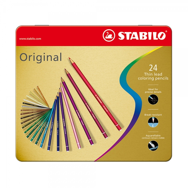 Stabilo Original Scatola in metallo da 24 matite colorate professionali.