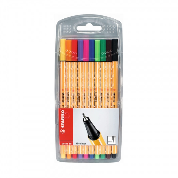 Stabilo Point 88 Astuccio in plastica contenente 10 pennarelli fineliner con tratto F 0,4 mm.