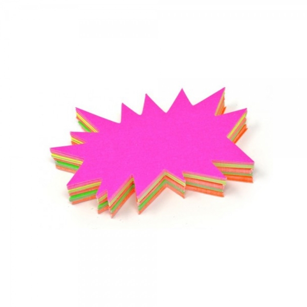 Studio 3A Pacchetto termoretratto da 50 cartelli segnaprezzi a forma di flash in 5 colori fluo: giallo, fucsia, verde, arancio, rosso.