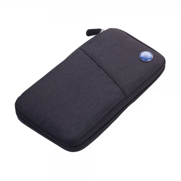 Ha 12 scomparti interni per documenti di viaggio, un passante per penna e una cerniera a tutto tondo.