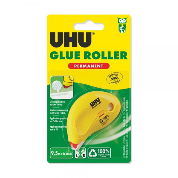 UHU Glue Roller Colla a nastro permanente con una larghezza del nastro di 6,5 mm e una lunghezza di 9,5 m.