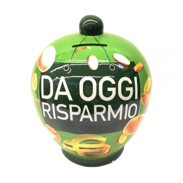 Virca Salvadanaio in terracotta smaltata con grafica personalizzata Da Oggi Risparmio.