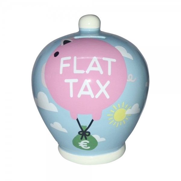 Virca Salvadanaio in terracotta smaltata con grafica personalizzata Flat Tax.