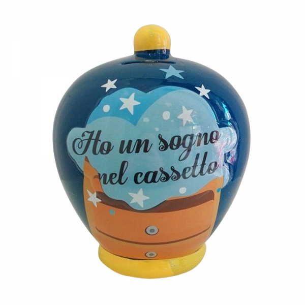 Virca Piggy bank in glazed terracotta with personalized graphics I Have a Dream in the Drawer .
