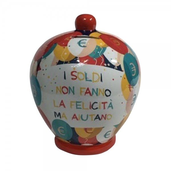 Virca Salvadanaio in terracotta smaltata con grafica personalizzata I Soldi Non Fanno La felicità Ma Aiutano.