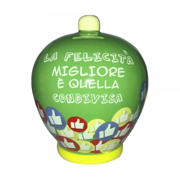Virca Salvadanaio in terracotta smaltata con grafica personalizzata La Felicità Migliore È Quella Condivisa.