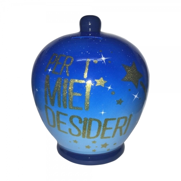 Virca Salvadanaio in terracotta smaltata con grafica personalizzata Per I Miei Desideri.