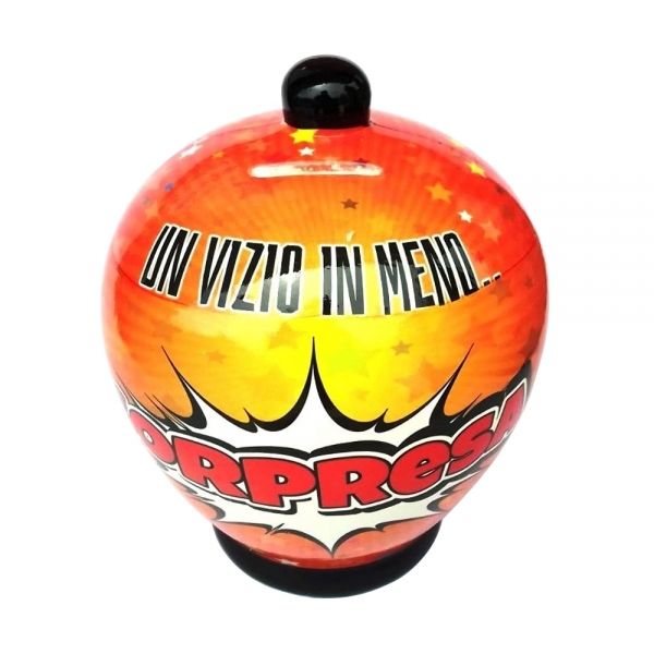 Virca Salvadanaio in terracotta smaltata con grafica personalizzata Un Vizio In Meno... Sorpresa.