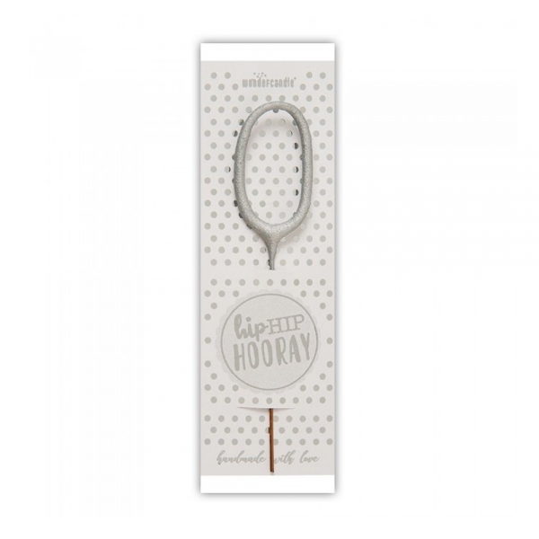 Wondercandle Candelina scintillante di colore argento con N° 0.