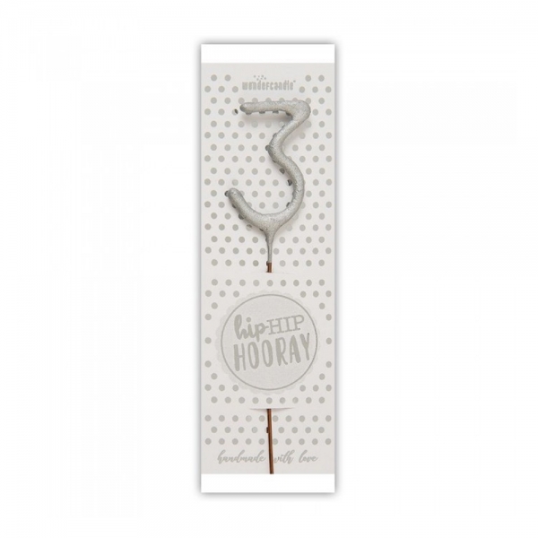 Wondercandle Candelina scintillante di colore argento con N° 3.