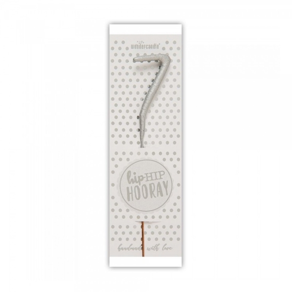 Wondercandle Candelina scintillante di colore argento con N° 7.