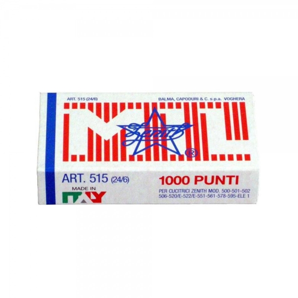 Zenith Case of 1000 staples 515 pitch 24 mm and height 6 mm for Zenith staplers 501 - 501/E - 500 - 502 - 506 - 578 - 520 - 520/E - 522 - 522/E - 551 - 595 - 561 - ELE 1 .