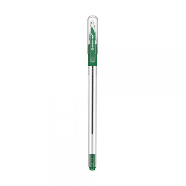 Osama OBG Ballpoint pen with cap and green oil-based gel ink .