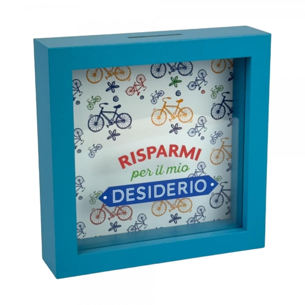 The piggy bank is made of wood with a transparent window to keep track of your savings accumulation, making the experience more engaging and motivating.