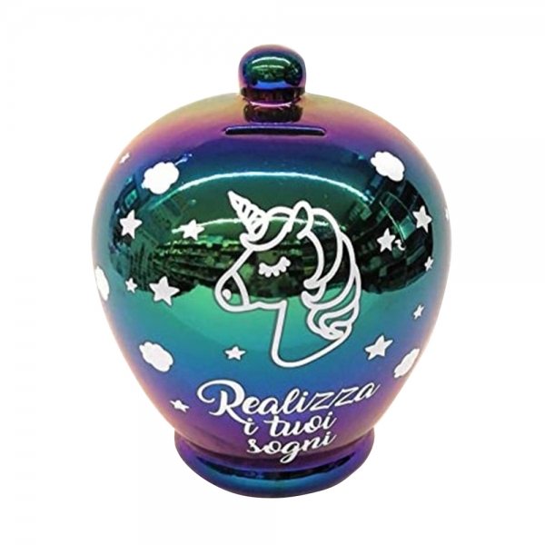Virca Piggy Bank in glazed terracotta with personalized graphics Make Your Dreams Come True .
